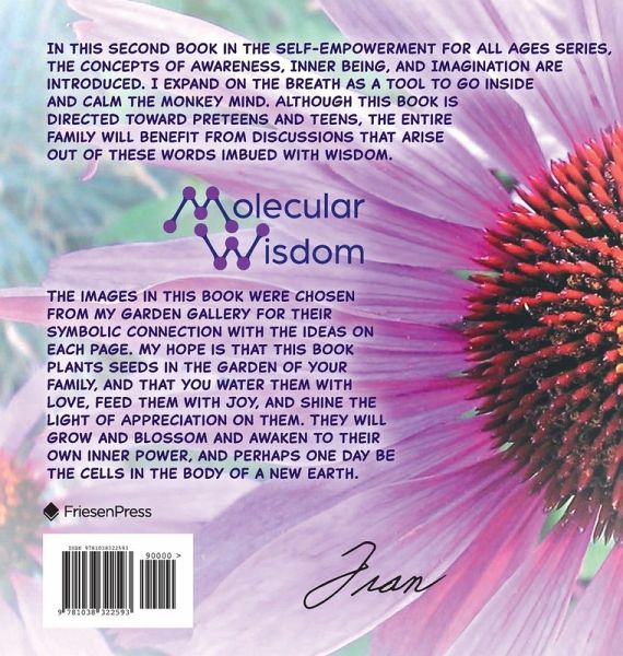 In this second book in the Self-Empowerment for All Ages series, the concepts of Awareness, Inner Being, and Imagination are introduced. I expand on the Breath as a tool to go inside and calm the monkey mind. Although this book is directed toward preteens and teens, the entire family will benefit from discussions that arise out of these words imbued with wisdom. The images in this book were chosen from my garden gallery for their symbolic connection with the ideas on each page. My hope is that this book plants seeds in the garden of your family, and that you water them with Love, feed them with Joy, and shine the Light of Appreciation on them. They will grow and blossom and awaken to their own inner power, and perhaps one day BE the cells in the body of a new earth.