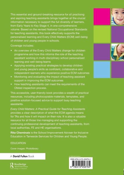 Introduction 1. Every Child Matters: opportunities and challenges for teaching assistants 2. Teaching Assistants Removing Barriers to Learning and Well Being 3. Every Child Matters and the Role of the Teaching Assistant 4. Teaching Assistants Supporting Pupils to be Healthy and Stay Safe 5. Teaching Assistants Supporting Pupils to Enjoy and Achieve 6. Teaching Assistants Supporting Pupils to Make a Positive Contribution and to Achieve Economic and Social Well Being 7. Monitoring and Evaluating the Impact of Teaching Assistant Support and Interventions on Pupils Every Child Matters Outcomes