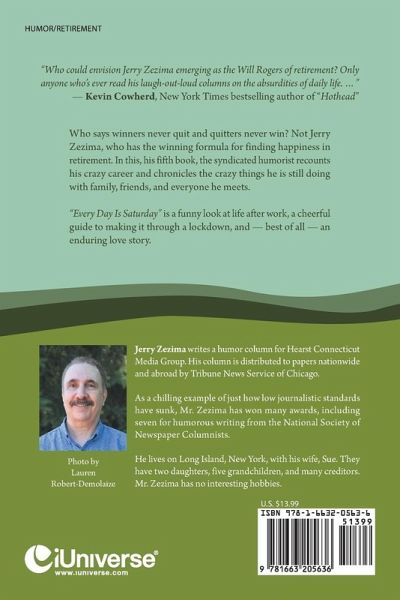 "Who could envision Jerry Zezima emerging as the Will Rogers of retirement? Only anyone who's ever read his laugh-out-loud columns on the absurdities of daily life. ..." - Kevin Cowherd, New York Times bestselling author of "Hothead" Who says winners never quit and quitters never win? Not Jerry Zezima, who has the winning formula for finding happiness in retirement. In this, his fifth book, the syndicated humorist recounts his crazy career and chronicles the crazy things he is still doing with family, friends, and everyone he meets. "Every Day Is Saturday" is a funny look at life after work, a cheerful guide to making it through a lockdown, and - best of all - an enduring love story.