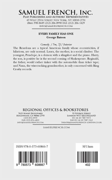 Comedy / 5m, 7f / Interior The Reardons are a typical American family whose eccentricities, if hilarious, are only normal. Laura, the mother, is a social climber. The youngest, Penelope, is a demon with a slingshot and the piano. Harry, the son, is positive he is the second coming of Shakespeare. Reginald, the father, would rather tinker with the automobile than ticker tape; and Nana, the wisecracking grandmother, is only concerned with Bing Crosby records.