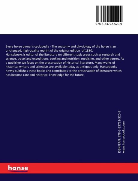 Every horse owner's cyclopedia - The anatomy and physiology of the horse is an unchanged, high-quality reprint of the original edition of 1880.