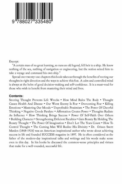 Orison emphasizes in this edition the concept that we are responsible for and can establish our own inner states of health and happiness, as well as our outer circumstances. Contents: - Steering Thought Prevents Life Wrecks - How Mind Rules The Body - Thought Causes Health And Disease - Our Worst Enemy Is Fear - Overcoming Fear - Killing Emotions - Mastering Our Moods - Unprofitable Pessimism - The Power Of Cheerful Thinking - Negative Creeds Paralyze - Affirmation Creates Power - Thoughts Radiate As Influence - How Thinking Brings Success - Power Of Self-Faith Over Others - Building Character - Strengthening Deficient Faculties - Gain Beauty By Holding The Beauty Thought - The Power Of Imagination - Don't Let The Years Count - How To Control Thought - The Coming Man Will Realize His Divinity - Dr. Orison Swett Marden (1848-1924) was an American inspirational author who wrote about achieving success in life and founded SUCCESS magazine in 1897. He is often considered as the father of the modern-day inspirational talks and writings and his words make sense even to this day. In his books he discussed the common-sense principles and virtues that make for a well-rounded, successful life.