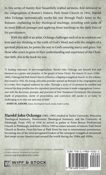 In this series of twenty-four beautifully crafted sermons, first delivered to the congregation of Boston's historic Park Street Church in 1942, Harold John Ockenga systematically works his way through Paul's letter to the Romans--explaining its key theological teachings, wrestling with some of its most difficult passages and applying those teachings to the daily lives of his parishioners. With the skill of an artist, Ockenga challenges each of us to conform our lives and our thinking to the truth of God's Word and with the insights of a spiritual physician, he points the way to God's amazing mercy and grace. For those who yearn to grow in their understanding and experience of the Christian faith, this is the book for you.
