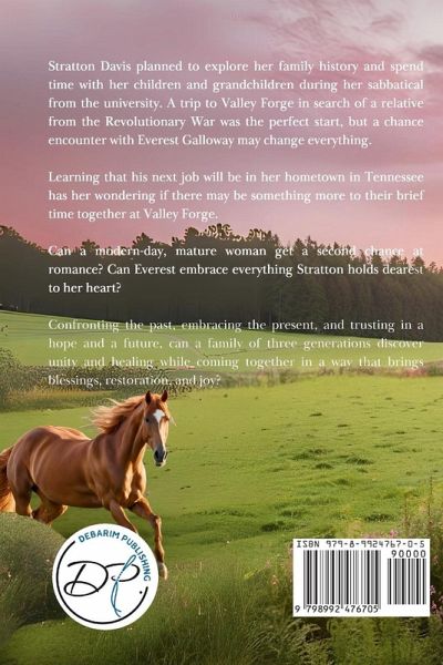 Stratton Davis planned to explore her family history and spend time with her children and grandchildren during her sabbatical from the university. A trip to Valley Forge in search of a relative from the Revolutionary War was the perfect start, but a chance encounter with Everest Galloway may change everything. Learning that his next job will be in her hometown in Tennessee has her wondering if there may be something more to their brief time together at Valley Forge. Can a modern-day, mature woman get a second chance at romance? Can Everest embrace everything Stratton holds dearest to her heart? Confronting the past, embracing the present, and trusting in a hope and a future, can a family of three generations discover unity and healing while coming together in a way that brings blessings, restoration, and joy?