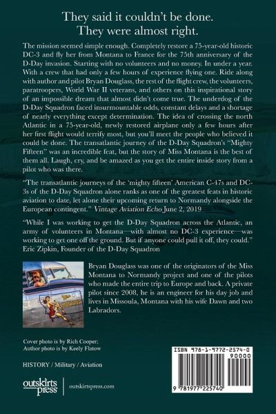 Every Reason to Fail is unlike anything you've ever read. It's not a history book, but it's full of old history-and new history-from cover to cover, and with historic people and airplanes to boot! It's not a mystery book, but it's full of genuine suspense and intrigue. It's not an aviation book, but in it you will get a glimpse into the real world of aviation and aviators that few will ever be fortunate enough to experience. It's not a geography book, but The Crew will take you to places you've probably never heard of, and few will ever go. It's not a self-help book, but in it you might find the inspiration to attempt something worthwhile that seems impossible. It's not an adventure book, but the tale is about an adventure like few in modern history. It's not a military book, but it's full of military history and it's main characters are old warbirds. It's not a book on project management, but you will learn many things about how NOT to run a major project…and why those things don't matter if you get the main things right. It's not a math book, but…it's just not a math book. So there's that. The mission seemed simple enough. Completely restore a 75-year-old historic DC-3 and fly her from Montana to France for the 75th anniversary of the D-Day invasion. Starting with no volunteers and no money. In under a year. With a crew that had only a few hours of experience flying one. Ride along with author and pilot Bryan Douglass, the rest of the flight crew, the volunteers, paratroopers, World War II veterans, and others on this inspirational story of an impossible dream that almost didn't come true. The underdog of the D-Day Squadron faced insurmountable odds, constant delays and a shortage of nearly everything except determination. The idea of crossing the north Atlantic in a 75-year-old, newly restored airplane only a few hours after her first flight would terrify most, but you'll meet the people who believed it could be done. The transatlantic journey of the D-Day Squadron's "Mighty Fifteen" was an incredible feat, but the story of Miss Montana is the best of them all. Laugh, cry, and be amazed as you get the entire inside story from a pilot who was there.