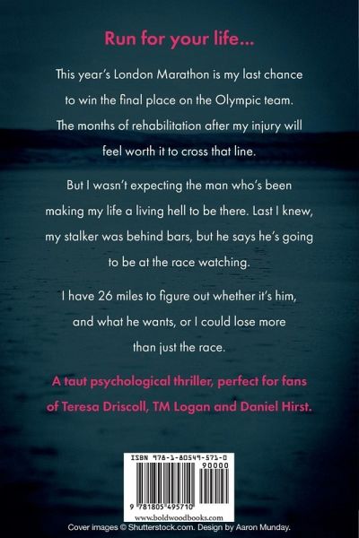 'The most original stalker novel I've ever read!' Lesley Kara Run for your life... This year's London Marathon is my last chance to win the final place on the Olympic team. The months of rehabilitation after my injury will feel worth it to cross that line. But I wasn't expecting the man who's been making my life a living hell to be there. Last I knew, my stalker was behind bars, but he says he's going to be at the race watching. I have 26 miles to figure out whether it's him, and what he wants, or I could lose more than just the race. A taut psychological thriller, perfect for fans of Teresa Driscoll, TM Logan and Daniel Hirst. 'A brilliantly unique storyline - I loved it' Valerie Keogh 'Clever and compelling! I loved everything about this one: the concept, the setting, the structure...' Lesley Kara 'A rollercoaster of a read! Kept me gripped until the very last page.' J A Baker 'Fresh, pacey, and exciting! You'll be racing to the finish at breakneck speed!' L C North 'So cleverly written - I didn't know who to trust and what to think! Brilliant.' Chris Frost 'I sprinted to finish this heart pounding tale of deception, a real nail biter!' Gemma Rogers 'A fast-paced psychological thriller that will keep you up all night!' Diana Wilkinson 'Clever and original. An exceptional, dark and tense read, with breath-taking twists. Highly recommended!' D. E. White