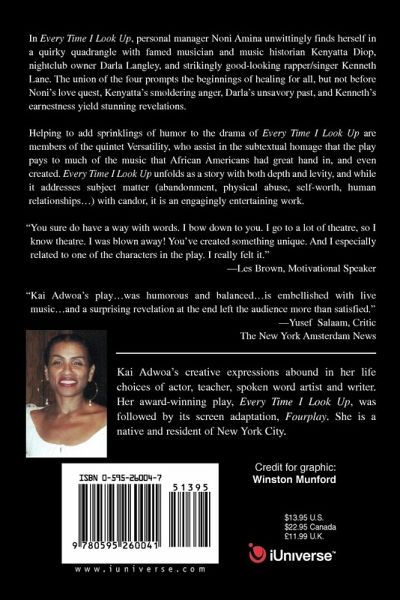 A drama sprinkled with humor, a quirky quadrangle unwittingly formed by two women and two men whose overlapping lives bring to the fore issues of self-esteem, abandonment, an unsavory past, unbridled anger, masked lust and earnest love. In Every Time I Look Up, personal manager Noni Amina unwittingly finds herself in a quirky quadrangle with famed musician and music historian Kenyatta Diop, nightclub owner Darla Langley, and strikingly good-looking rapper/singer Kenneth Lane. The union of the four prompts the beginnings of healing for all, but not before Noni s love quest, Kenyatta s smoldering anger, Darla s unsavory past, and Kenneth s earnestness yield a stunning revelation. Helping to add sprinklings of humor to the drama of Every Time I Look Up are members of the quintet Versatility, who assist in the subtextual homage that the play pays to much of the music that African Americans had great hand in, and even created. Every Time I Look Up unfolds as a story with both depth and levity, and while it addresses subject matter (abandonment, physical abuse, self-worth, human relationships ) with candor, it is an engagingly entertaining work.