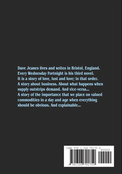 Dave Jeanes lives and writes in Bristol, England. Every Wednesday Fortnight is a story of love, lust and love; in that order. It is a story about what business. About what happens when supply outstrips demand. And vice-versa. A story of the importance we place on valued things in a day and age when everything should be obvious. And explainable...