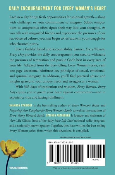Daily Encouragement for Every Woman's Heart Each new day brings fresh opportunities for spiritual growth-along with challenges to your commitment to integrity. Subtle temptations to compromise often tiptoe their way into your thoughts. As you talk with misguided friends and experience the pressures of our sex-obsessed culture, you may begin to feel alone in your struggle for wholehearted purity. Like a faithful friend and accountability partner, Every Woman, Every Day provides the daily encouragement you need to withstand the pressures of temptation and pursue God's best in every area of your life. Adapted from the best-selling Every Woman series, each one-page devotional reinforces key principles of sexual, emotional, and spiritual integrity. In addition, you'll find practical advice and insights geared to your unique needs and struggles as a woman. With 365 days of inspiration and wisdom, Every Woman, Every Day equips you to guard your heart against compromise-and to experience true and lasting fulfillment.