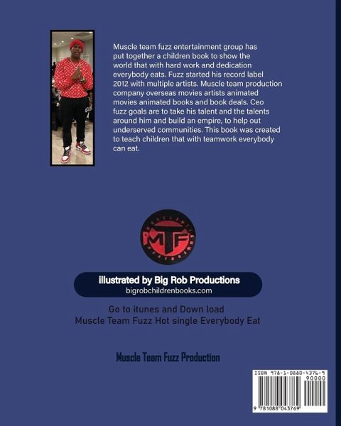 Muscle team fuzz entertainment group has put together a children book to show the world that with hard work and dedication everybody eats. Fuzz started his record label 2012 with multiple artists. Muscle team production company overseas movies artists animated movies animated books and book deals. Ceo fuzz goals are to take his talent and the talents around him and build an empire, to help out underserved communities. This book was created to teach children that with teamwork everybody can eat.