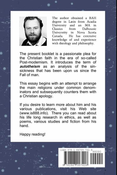 A plea for the Christian faith in the era of so-called Postmodernism. It introduces the term of autotheism as an analysis of the sin-sickness that has been upon us since the Fall of man. This essay begins with an attempt to arrange the main religions under common denominators and subsequently counters them with a Christian apology. Preface: Many people know Jesus only as a cuss word. The word sin is thought to be used by overly religious folks. The communists in the former USSR considered religion a disease to be treated in a re-education camp. Nobody has ever seen God. Yet the Bible claims that some did and talked about it. A loving God would not torture people in hell. Yet Christ Jesus warned about a fire in the afterlife that cannot be quenched. He cannot have talked about some coal fire. Therefore it must be some kind of soul fire. The 8 Main Ideas About God: Religions are summed up as being 8 in number; monotheism, mysticism, pantheism, polytheism, rationalism, agnostic materialism, the antireligion atheism and Satanism. The Christian form of monotheism is seen as the truth, from which the other isms deviate on the right and on the left, with Satanism as the nadir of depravity. Mysticism is seen as an overly emotional dedication of the soul, pantheism as too impersonal and polytheism as a hopeless attempt to please capricious gods. This as worsening forms of aberration on the right. On the left rationalism is an exaggeration of reason, agnostic materialism as a pursuit of goods and services that in the end cannot satisfy and atheism as a pluck-the-day philosophy that gives you no hope in the end. Satanism is a hate reaction against a God who is seen as totally unreasonable and evil is preached as a good in itself. But if Satan is to be our liberator, then the God of Judeo-Christianity is far more powerful; for He made his royal badness. And so Satanists can never hope to escape His fury. Why We Humans Are Lost In Ourselves: In the end every form of philosophy, religion, science and politics ends or at best takes on a new jacket. The heart of the problem is autotheism. We all want to play god in our worlds, big or small. We want to go it alone and either reason God away or change His image into something we are comfortable with. This idolatry of self is doomed and is bound to incur the wrath of an all-holy God. If Napoleon had had space ships, he had wanted to be pronounced god. Mormons actually preach that their adherents can attain divinity.