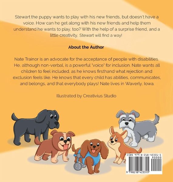 Stewart the puppy wants to play with his new friends but doesn't have a voice. How can he get along with his new friends and help them understand that he wants to play, too? With the help of a surprise friend and a little creativity, Stewart will find a way!