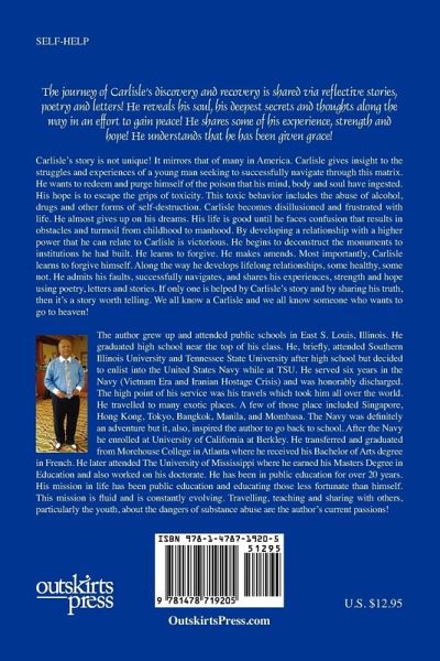 Carlisle grew up in East St. Louis, Illinois during a time when America was changing. He comes from a nurturing and loving family environment where education, God and community were very much a part. Despite the troubles of the times, his family, particularly his father, taught him and modeled for him how to do/be right, how to be a man. "Right" was also modeled very well to him at home, at school and at church. Carlisle started off "right" but, because of a fascination with learning and observing, he noticed early on a world of mixed messages. Carlisle saw a world he began to question. He saw a tumultuous world! He began to be disillusioned and he would soon rebel against in his own, self-destructive way. Carlisle's ambitions were to satisfy God, his family and pursue his dreams. His role models were Martin Luther King and his father. This confusion/disillusion began as a young Black male growing up and watching the civil rights movement unfold. He watched in amazement and wondered, why? The disappointments of watching his parents have problems added to the disillusion. He was crushed when they would argue and break up. Through watching the war footage on TV every night, along with negative peer pressure and the rebellious seventies, Carlisle began to make radical changes. He began to internalize and struggle to stay focused. He had created these huge monuments and formed his own construct. Racism, sexism, family issues, war and materialism added to his labyrinth of insanity. These mixed messages that this young Black boy/teen/man's mind absorbed like a sponge caused Carlisle to struggle and lead a secret, almost separate life of deception and illusion. Carlisle was on a path of selfishness, ego and false pride. He was on a certain path of total self-destruction. He learns early-on to navigate this matrix and because of confusion he gets really caught up in a society and world of drugs, sex and negativity. When and where these change takes p