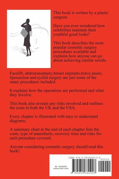 This book is written by a plastic surgeon. Have you ever wondered how celebrities maintain their youthful good looks? This guide describes the most popular cosmetic surgery procedures available, and describes how anyone can get similar results. It explains how the operations are performed and what they involve. Facelift, abdominoplasty, botox, facial peels, blepharoplasty and breast implants are some of the many procedures included. Each chapter is illustrated with easy to understand diagrams. This book also reveals any risks and costs involved in these procedures. This is a useful guide for healthcare associates working within this field. It is an essential read for anyone considering cosmetic plastic surgery. Buy it now!