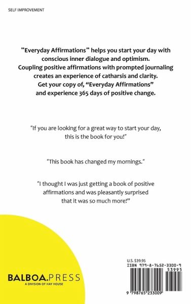 A few minutes is all it takes to incorporate mindfulness and intention into your daily routine. With 365 thoughts, affirmations and journal prompts, "Everyday Affirmations" helps you start your day with conscious inner dialogue and optimism. Coupling positive affirmations with prompted journaling creates an experience of catharsis and clarity. Kickstart your day with a cup of coffee, your copy of, "Everyday Affirmations" and experience 365 days of positive change.