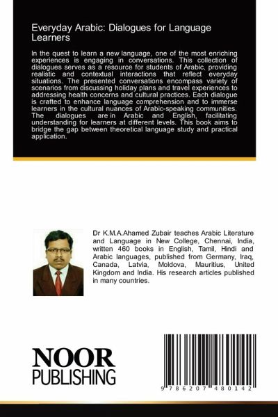 In the quest to learn a new language, one of the most enriching experiences is engaging in conversations. This collection of dialogues serves as a resource for students of Arabic, providing realistic and contextual interactions that reflect everyday situations. The presented conversations encompass variety of scenarios from discussing holiday plans and travel experiences to addressing health concerns and cultural practices. Each dialogue is crafted to enhance language comprehension and to immerse learners in the cultural nuances of Arabic-speaking communities. The dialogues are in Arabic and English, facilitating understanding for learners at different levels. This book aims to bridge the gap between theoretical language study and practical application.