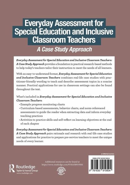 Everyday Assessment for Special Education and Inclusive Classroom Teachers: A Case Study Approach provides a foundation in practical research-based methods to help today's teachers tailor their instruction to meet the needs of all learners.