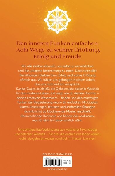 Lebensnah und praktisch zeigt Suneel Gupta, wie wir unser Dharma - unseren kreativen Wesenskern - finden und den mächtigen Funken der Begeisterung neu in uns entfachen. Mit Guptas klaren Anleitungen und kraftvollen Übungen durchbrechen wir blockierende Muster, erschließen überraschende Horizonte und erkennen, was für uns im Leben wirklich zählt.