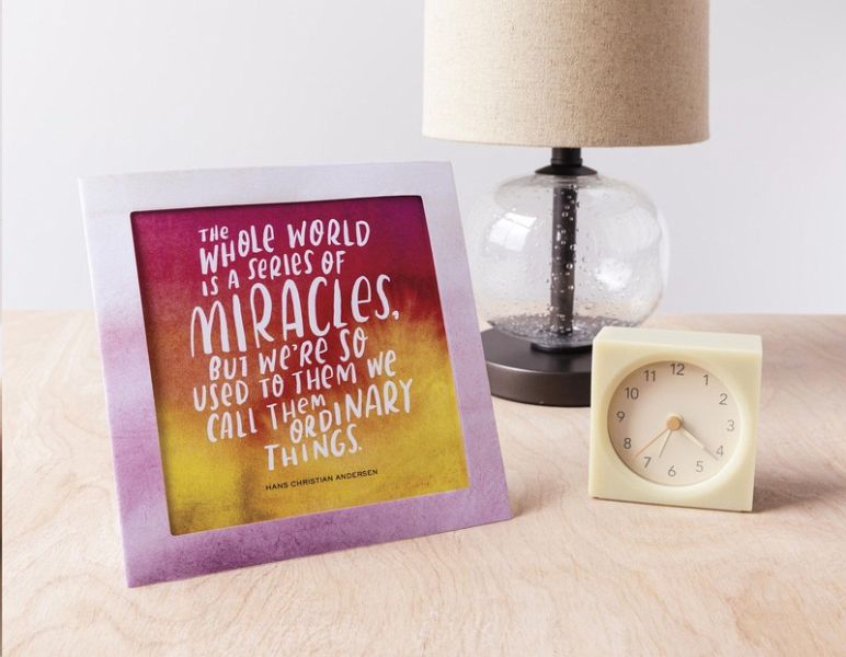 Keep meaningful reminders close at hand: on your desk, by your bedside, anywhere you need inspiration. Refresh your perspective every day. Select from 50 artfully hand-lettered expressions of gratitude, curated by A Network for Grateful Living. The pull-out prints are ready for display in the decorative frame included.