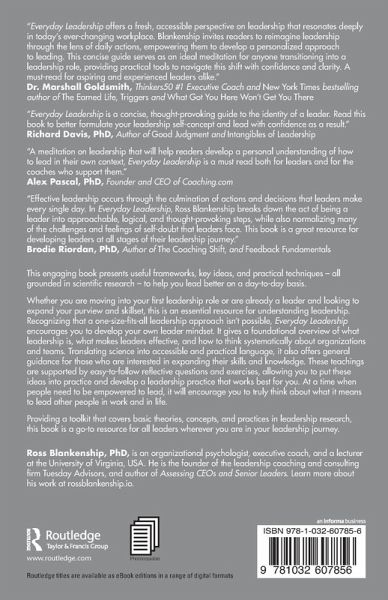 Whether you are moving into your first leadership role or are already a leader and looking to expand your purview and skillset, this is an essential resource for understanding leadership. Recognizing that a one-size-fits-all leadership approach isn't always possible, Everyday Leadership encourages you to develop your own leader mindset. It gives a foundational overview of what leadership is, what makes leaders effective, and how to think systematically about organizations and teams. Translating science into accessible and practical language, it also offers general guidance for those who are interested in expanding their skills and knowledge. These teachings are supported by easy-to-follow reflective questions and exercises, allowing you to put these ideas into practice and develop a leadership practicethat works best for you. At a time when people need to be empowered to lead, it will encourage you to truly think about what it means to lead other people in work and in life.
