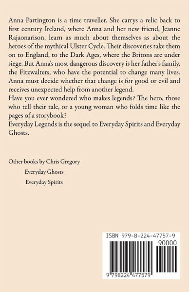 Anna Partington is a time traveller. She carrys a relic back to first century Ireland, where Anna and her new friend, Jeanne Rajaonarison, learn as much about themselves as about the heroes of the mythical Ulster Cycle. Their discoveries take them on to England, to the Dark Ages, where the Britons are under siege. But Anna's most dangerous discovery is her father's family, the Fitzwalters, who have the potential to change many lives. Anna must decide whether that change is for good or evil, with unexpected help from another legend. Have you ever wondered who makes legends? The hero, those who tell their tale, or a young woman who folds time like the pages of a storybook? Everyday Legends is the sequel to Everyday Spirits and Everyday Ghosts.