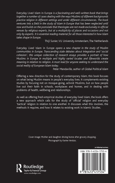 This book offers a new direction for the study of contemporary Islam by focusing on what being Muslim means in people's everyday lives. It complements existing studies by focusing not on mosque-going, activist Muslims, but on how people live out their faith in schools, workplaces and homes, and in dealing with problems of health, wellbeing and relationships. As well as offering fresh empirical studies of everyday lived Islam, the book offers a new approach which calls for the study of 'official' religion and everyday 'tactical' religion in relation to one another. It discusses what this involves, the methods it requires, and how it relates to existing work in Islamic Studies.