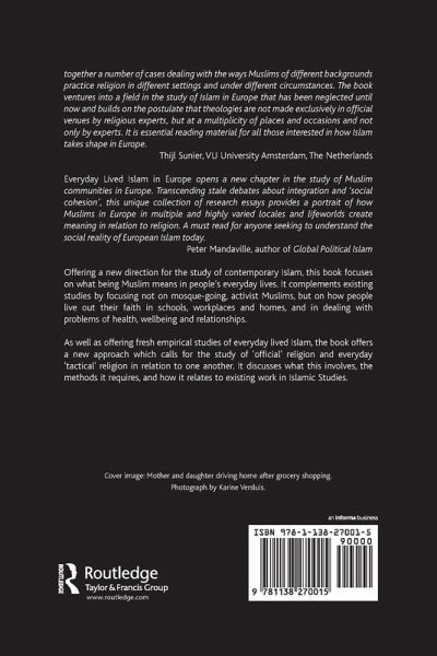 This book offers a new direction for the study of contemporary Islam by focusing on what being Muslim means in people's everyday lives. It complements existing studies by focusing not on mosque-going, activist Muslims, but on how people live out their faith in schools, workplaces and homes, and in dealing with problems of health, wellbeing and relationships. As well as offering fresh empirical studies of everyday lived Islam, the book offers a new approach which calls for the study of 'official' religion and everyday 'tactical' religion in relation to one another. It discusses what this involves, the methods it requires, and how it relates to existing work in Islamic Studies.
