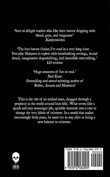 A fantastically original horror that tells the tale of an undead man, dragged through a prophecy as the world around him falls. What seems like a quick and easy messenger job, descends into a race to change the very fabric of existence. In a world that makes increasingly little sense, he must try to stay alive to bring a new balance to existence.