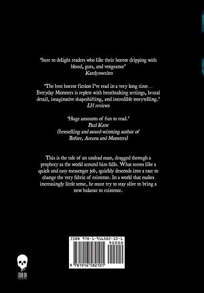 A fantastically original horror that tells the tale of an undead man, dragged through a prophecy as the world around him falls. What seems like a quick and easy messenger job, descends into a race to change the very fabric of existence. In a world that makes increasingly little sense, he must try to stay alive to bring a new balance to existence.