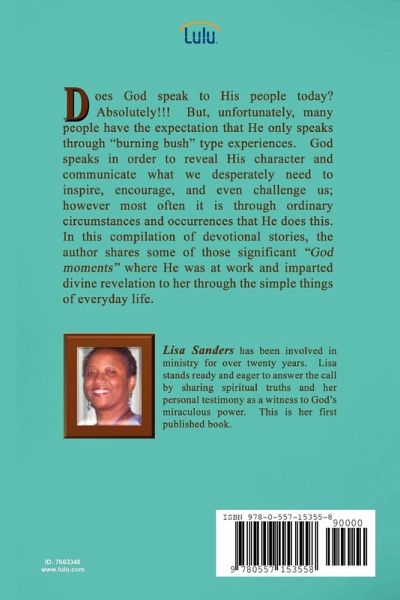 Many people wonder if God still speaks today as He did during biblical times. Undeniably, individuals in the Bible had extremely unique encounters with God in which He conveyed a clear message. And, undeniably, just as He did back then God still wants to communicate with us today in a very real and intimate way. Most often, today He will not speak in burning bush type experiences, but rather very simply. Everyday Revelations is a compilation of devotional stories in which the author shares personal experiences of how God has spoken simply, but yet profoundly in her life, and encourages readers to look for God to speak in everyday occurrences.