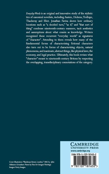 Everyday Words and the Character of Prose in Nineteenth-Century Britain is an original and innovative study of the stylistic tics of canonical novelists including Austen, Dickens, Trollope, Thackeray and Eliot. Jonathan Farina shows how ordinary locutions such as 'a decided turn', 'as if' and 'that sort of thing' condense nineteenth-century manners, tacit aesthetics and assumptions about what counts as knowledge. Writers recognized these recurrent 'everyday words' as signatures of 'character'. Attending to them reveals how many of the fundamental forms of characterizing fictional characters also turn out to be forms of characterizing objects, natural phenomena and inanimate, abstract things, such as physical laws, the economy and legal practice. Ultimately, this book revises what 'character' meant to nineteenth-century Britons by respecting the overlapping, transdisciplinary connotations of the category.