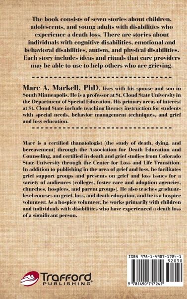 The book consists of seven stories about children, adolescents, and young adults with disabilities who experience a death loss. There are stories about individuals with cognitive disabilities, emotional and behavioral disabilities, autism, and physical disabilities. Each story includes ideas and rituals that care providers may be able to use to help others who are grieving.