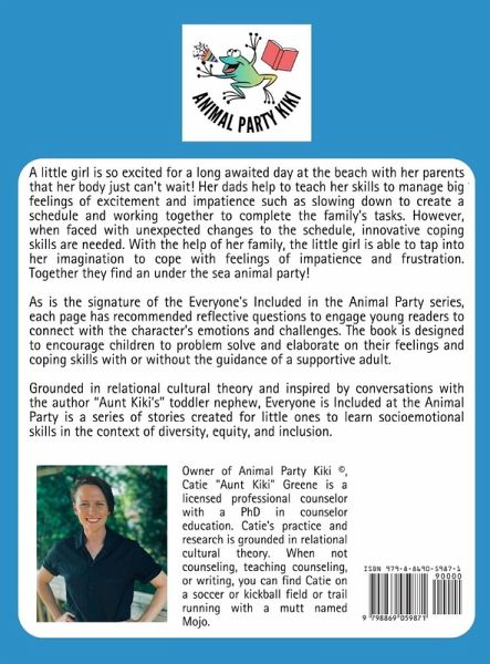 A little girl is so excited for a long awaited day at the beach with her parents that her body just can't wait! Her dads help to teach her skills to manage big feelings of excitement and impatience such as slowing down to create a schedule and working together to complete the family's tasks. However, when faced with unexpected changes to the schedule, innovative coping skills are needed. With the help of her family, the little girl is able to tap into her imagination to cope with feelings of impatience and frustration. Together they find an under the sea animal party! As is the signature of the Everyone's Included in the Animal Party series, each page has recommended reflective questions to engage young readers to connect with the character's emotions and challenges. The book is designed to encourage children to problem solve and elaborate on their feelings and coping skills with or without the guidance of a supportive adult. Grounded in relational cultural theory and inspired by conversations with the author "Aunt Kiki's" toddler nephew, Everyone is Included at the Animal Party is a series of stories created for little ones to learn socioemotional skills in the context of diversity, equity, and inclusion.