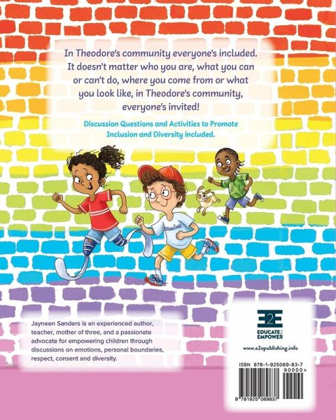 In Theodore's community everyone's included. It doesn't matter who you are, what you can or can't do, where you come from or what you look like, in Theodore's community, everyone's invited! Using rhythm and rhyme and a host of colourful and unique characters, this beautifully illustrated and engaging book celebrates the importance of being part of an inclusive and diverse community. Thought-provoking Discussion Questions and Activities to Promote Inclusion and Diversity included.
