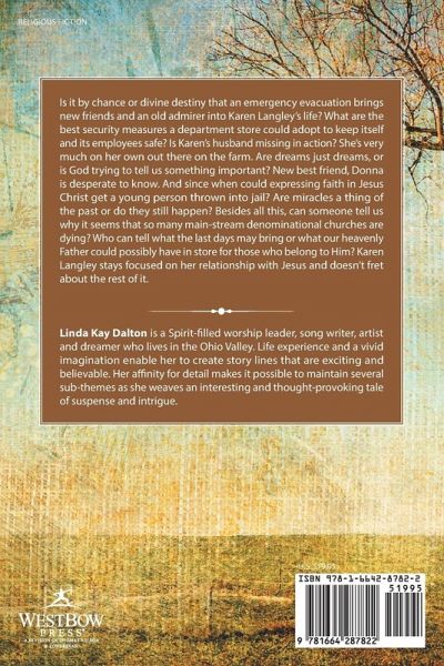 Is it by chance or divine destiny that an emergency evacuation brings new friends and an old admirer into Karen Langley's life? What are the best security measures a department store could adopt to keep itself and its employees safe? Is Karen's husband missing in action? She's very much on her own out there on the farm. Are dreams just dreams, or is God trying to tell us something important? New best friend, Donna is desperate to know. And since when could expressing faith in Jesus Christ get a young person thrown into jail? Are miracles a thing of the past or do they still happen? Besides all this, can someone tell us why it seems that so many main-stream denominational churches are dying? Who can tell what the last days may bring or what our heavenly Father could possibly have in store for those who belong to Him? Karen Langley stays focused on her relationship with Jesus and doesn't fret about the rest of it.