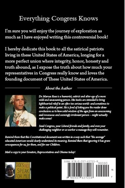 Dr. Marcus Rose is a humorist, satirist and alter-ego of a more mild and unassuming person. His books are intended to bring lighthearted relief to an often too serious world--and sometimes to make a political point. Rather than writing something new, or editing and updating something old, he often republishes old works under new humorous titles for comic effect; letting you the reader draw conclusions as to how such solid wisdom of the ages from an unassuming and innocuous and seemingly irrelevant subject -- might be applied in a slightly different way. Send Congress a message they will remember. Remind them that this document was written in a way such that "the average" educated American would clearly understand its meaning. Remind them that ignoring it has grave consequences for us, for them, and for our Children. Mail a copy to your Senators & Representatives today!