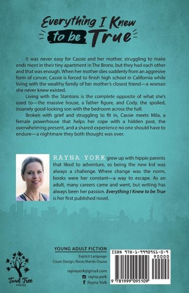 It was never easy for Cassie and her mother, struggling to make ends meet in their tiny apartment in the Bronx, but they had each other and that was enough. When her mother dies suddenly from an aggressive form of cancer, Cassie is forced to finish high school in California while living with a wealthy family friend of her mother's—a woman she never knew existed. Living with the Stanton's is the complete opposite of what she's used to—the massive house, a traditional family unit, and Cody, the spoiled, insanely good-looking son with the bedroom across the hall. Broken with grief and struggling to fit in, Cassie has to cope with her mother's hidden past, the overwhelming present, and an encounter no one should have to endure—a nightmare she thought was over.