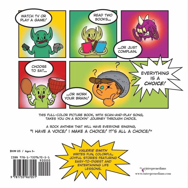 ¿"I used to get angry and throw my favorite toys. I used to think 'I have to' and thought I had no choice. And then I learned some lessons that changed the way I think, and when I started using them, removed my suffering. Sit back and read along as I sing my 'Everything is a Choice' song!" The human brain loves choice. So much so that when we remove choice, our brains immediately respond, "But I don't want to!" Sound familiar? The good news is everything is a choice. Can you feel your brain smiling just reading those words?! This full-color picture book, with accompanying scan-and-play song, is a rockin' journey about choice-from choosing to feel emotions in a constructive way, to choosing how to respond when you're told, "You have to!" Everything is a Choice will have the whole family singing, "I have a voice . . . I make a choice . . . It's all a choice!"