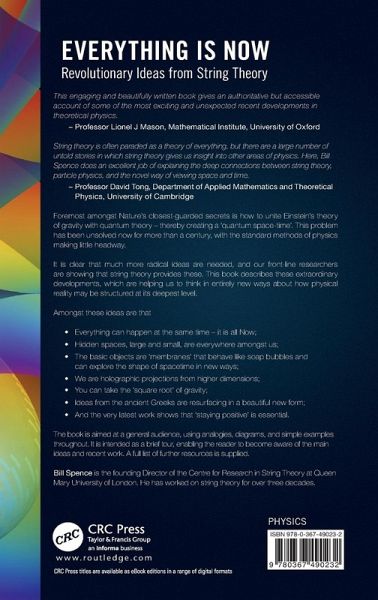 Everything is Now: Revolutionary Ideas from String Theory is a short, approachable introduction to string theory. In twelve digestible chapters, devoid of equations and jargon, Bill Spence seeks to answer the question â why does this rarefied field continue to dominate the landscape of theoretical physics?â .