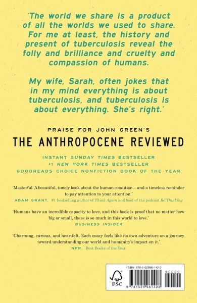 Instant #1 New York Times bestseller! ¿ #1 Washington Post bestseller! ¿ #1 Indie Bestseller! ¿ USA Today Bestseller! 'Earnest and empathetic.' - New York Times Tuberculosis has been entwined with humanity for millennia. Once romanticized as a malady of poets, today tuberculosis is seen as a disease of poverty that walks the trails of injustice and inequity we blazed for it. In 2019, author John Green met Henry Reider, a young tuberculosis patient at Lakka Government Hospital in Sierra Leone. John became fast friends with Henry, a boy with spindly legs and a big, goofy smile. In the years since that first visit to Lakka, Green has become a vocal advocate for increased access to treatment and wider awareness of the healthcare inequities that allow this curable, preventable infectious disease to also be the deadliest, killing over a million people every year. In Everything Is Tuberculosis, John tells Henry's story, woven through with the scientific and social histories of how tuberculosis has shaped our world-and how our choices will shape the future of tuberculosis.