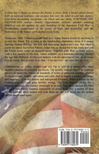 A farm boy's choice to protect his friend, a slave, from a brutal attack forces both on separate journeys: one escapes into war, the other is sold into slavery. Told from alternating viewpoints, one black and one white, Surviving the Fatherland author Annette Oppenlander delivers another stunning historical tale set against the epic backdrop of the American Civil War-a breathtaking examination of the power of hope and friendship, and the endurance of the human spirit to find a way home. Tennessee, 1861. Fifteen-year-old farm boy Adam Brown would do anything to protect his friend Tip, a slave at the neighboring plantation-even if it means fighting Nathan Billings, the rich and obnoxious landowner's son. But when it seems his attack has killed Nathan, Adam has no choice but to run away and join the Union Army under an assumed name. Together with Wes, a chatty soldier with a few secrets of his own, Adam embarks on a traumatic odyssey through the war-torn Midwest. As his soul darkens with the atrocities of war, all he wants is to go home. But in order to do that-if he survives-he must face his past. Unbeknownst to Adam, sixteen-year old Tip is sold to a farmer who takes drunken pleasure in torturing his slaves. Tip quickly realizes that if he wants to survive he must run. Ahead lie hundreds of miles of unknown country, infested by slave owners, traders, starvation and cold. And so begins a journey of escape and recapture, of brutal attacks and unexpected kindness. When a rescue by the Underground Railroad goes terribly wrong, Tip finds himself caring for a pregnant runaway, his journey seemingly at an end. They have reached the Ohio River, a vast watery expanse impossible to cross. It is only a matter of time before roaming slave traders will pick them up-he will never see his mother and his best friend again.
