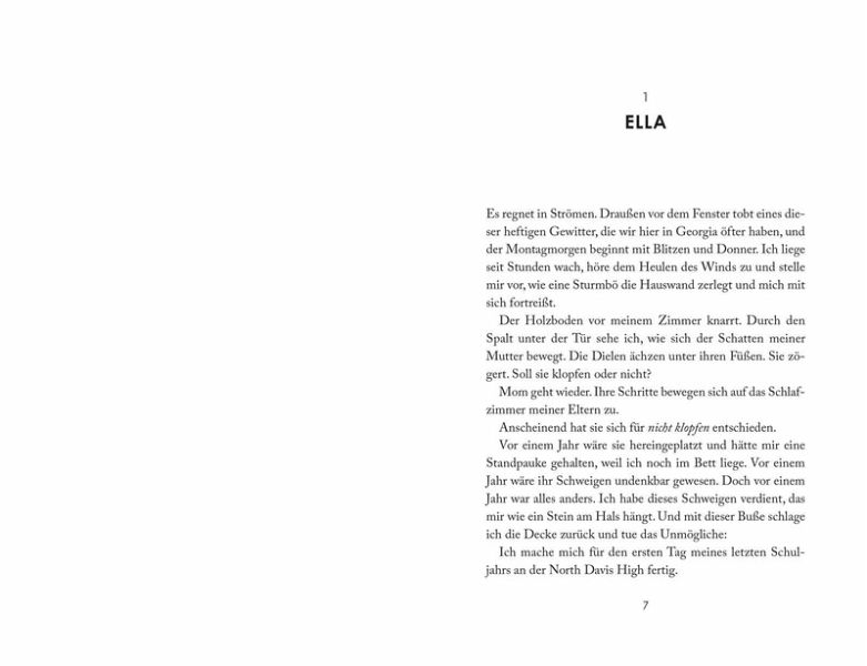 Ein Unfall hat alles verändert: Ella lebt, und ihre beste Freundin nicht. Die Schuld daran gibt sich Ella selbst. Alles erinnert sie an Hayley - besonders Sawyer, Hayleys Boyfriend. Keiner versteht Ella und ihren Schmerz so wie er, und bald wird ihr etwas Schreckliches klar: