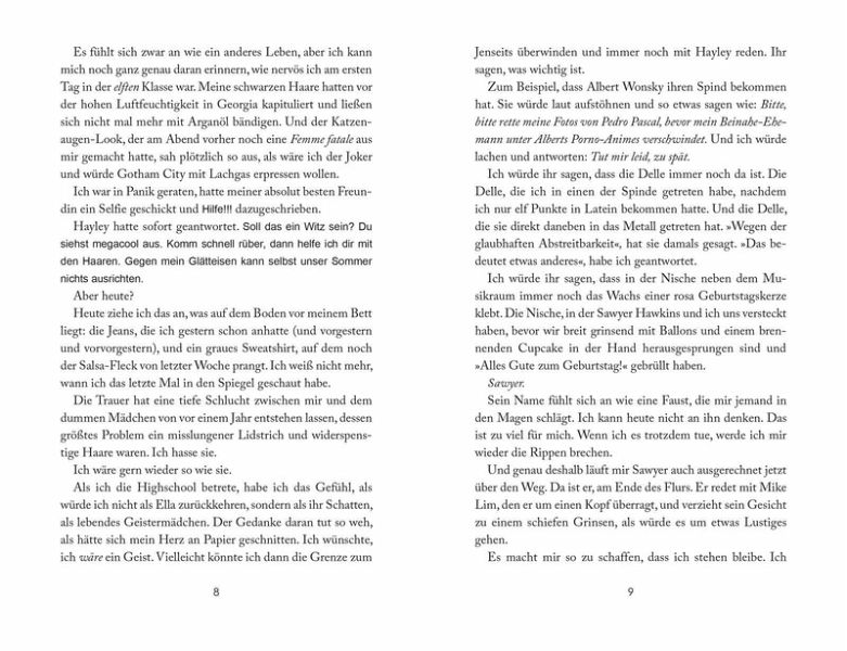 Sawyer scheint es genauso zu gehen. Doch Ella spürt, dass da etwas Dunkles ist, das ihn umgibt. Ist es Liebeskummer - oder vielleicht seine Begierde nach Hayley, die nie wieder gestillt werden kann? Verzweifelt und voller Schuldgefühle sucht Ella ausgerechnet in Hayleys Tagebuch Halt - und entdeckt eine erschütternde Wahrheit: Sawyers Beziehung mit Hayley war alles andere als perfekt. Und Ella bekommt zunehmend Angst vor dem, wozu Sawyer im Namen der Liebe fähig ist ...