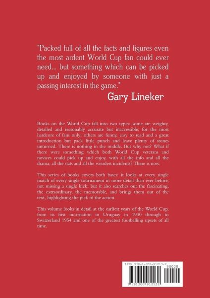 Books on the World Cup fall into two types: some are weighty, detailed and reasonably accurate but inaccessible, for the most hardcore of fans only; others are funny, easy to read and a great introduction but pack little punch and leave plenty of stones unturned. There is nothing in the middle. But why not? What if there were something which both World Cup veterans and novices could pick up and enjoy, with all the info and all the drama, all the stats and all the weirdest incidents? There is now. This series of books covers both bases: it looks at every single match of every single tournament in encyclopedic detail, not missing a single kick; but it also searches out the fascinating, the extraordinary, the memorable and brings them out of the text, highlighting the pick of the action. This volume looks in detail at the earliest years of the World Cup, from its first incarnation in Uruguay in 1930 through to Switzerland 1954 and one of the greatest footballing upsets of all time.