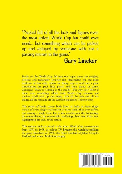 Books on the World Cup fall into two types: some are weighty, detailed and reasonably accurate but inaccessible, for the most hardcore of fans only; others are funny, easy to read and a great introduction but pack little punch and leave plenty of stones unturned. There is nothing in the middle. But why not? What if there were something which both World Cup veterans and novices could pick up and enjoy, with all the info and all the drama, all the stats and all the weirdest incidents? There is now. This series of books covers both bases: it looks at every single match of every single tournament in more detail than ever before, not missing a single kick; but it also searches out the fascinating, the extraordinary, the memorable, and brings them out of the text, highlighting the pick of the action. This volume looks at the three World Cups from 1970 to 1978, as colour TV brought the watching millions the great Brazilians of 1970, the Total Football of Johan Cruyff's Holland and a new World Cup trophy.