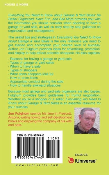 Everything You Need to Know about Garage & Yard Sales: Be Better Organized, Have Fun, and Sell More provides you with the information you should consider when deciding to have a garage or yard sale, as well as easy step-by-step guidance on organization and management. The useful tips and strategies in Everything You Need to Know about Garage & Yard Sales is the only reference you need to get started and accomplish your desired level of success. Author Jon Fulghum provides ideas for advertising, promotion, and display to help attract potential shoppers. He also explains: · Reasons for having a garage or yard sale · Types of garage or yard sales · When to have a sale · Types of shoppers · What items shoppers look for · How to price items · Appropriate conduct during the sale · How to handle awkward situations Because most garage and yard-sale organizers are also buyers, Fulghum provides basic guidelines for fruitful negotiation. Whether you're a shopper or a seller, Everything You Need to Know about Garage & Yard Sales is an essential resource for your success.