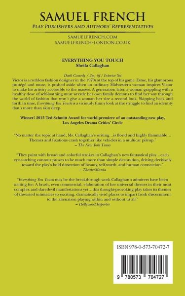 Victor is a ruthless fashion designer in the 1970s at the top of his game. Esme, his glamorous prot¿g¿ and muse, is pushed aside when an ordinary Midwestern woman inspires Victor to make his artistry accessible to the masses. A generation later, a woman grappling with a healthy dose of self-loathing must wrestle her own family demons to find her way through the world of fashion that won't give a woman her size a second look. Skipping back and forth in time, Everything You Touch is a viciously