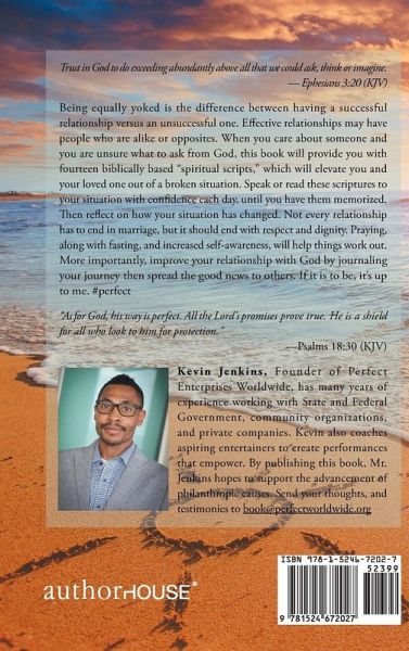 Being equally yoked is the difference between having a successful relationship versus an unsuccessful one. Effective relationships may have people who are alike or opposites. If you care about someone and you are unsure what to ask from God, this book will provide you with fourteen biblically based spiritual scripts, which will elevate you and your loved one out of a broken situation. Speak or read these scriptures to your situation with confidence each day until you have them memorized. Then reflect on how your situation has changed. Not every relationship has to end in marriage, but it should end with respect and dignity. Praying, along with fasting and increased self-awareness, will help things work out. More importantly, improve your relationship with God by journaling your journey, then spread the good news to others.