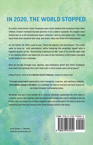 "Everything is going to be OK." But, is it? Is it really? There are moments when things are really, really sucky. As a healer, Chava Floryn's dad became the sort of physician who saw lots of struggle and challenge in his lifetime, and he understood how painful life could become after burying his own father at the tender age of nine-years-old. Still, this was the family mantra said when the going got tough. Which is why, this became Chava's tag line during a particularly difficult crisis. (Even if saying "EGBOK" felt decidedly glib.) In a post-covid world, when hospitals were short-staffed and visitation rules were limited, Chava's husband became gravely ill on a family vacation. His organs were failing due to a life-threatening septic infection-and no one knew why. The road back from that vacation was long, and every step was filled with uncertainty. As her father, Dr. Mike, used to say, "Treat the patient, not the disease." This book aims to treat us with a gentleness, while honoring the uncertain future with a hopeful quality of life. "Everything is going to be OK," even if it's not OK right now is the mantra which aims to make the dis-ease of our mortality a little more tolerable in the midst of any challenge. How do we get through fear, anxiety, and ultimately grief? Are there strategies that work for tackling life's hard stuff with a little humor and a lot of grace? Chava Floryn, host of the Nurture Series Podcast, shows us there are! Through meaningful exploration with therapists, coaches, and wellness experts, Everything's Going to Be Okay is a roadmap for how to nurture our best selves as we forge through challenging times. The goal is not to avoid the discomfort, but to dive right in with the compassion that life deserves. Especially when the chips are down. This is not supposed to be a pollyannaish prose, but a realistic look at how to face hard things without losing our grip- maybe while losing our grip. After all, we've all lost it at one point or another, right? Whether you are in the middle of a crisis or blissfully exploring life, this book is a funny, joyful, raw journey that will have you feeling like you're talking to an old friend. Are you ready for a little catharsis and a lot of growth? It's time to dive into nurturing ourselves and find out exactly why Everything's Going to Be Okay.