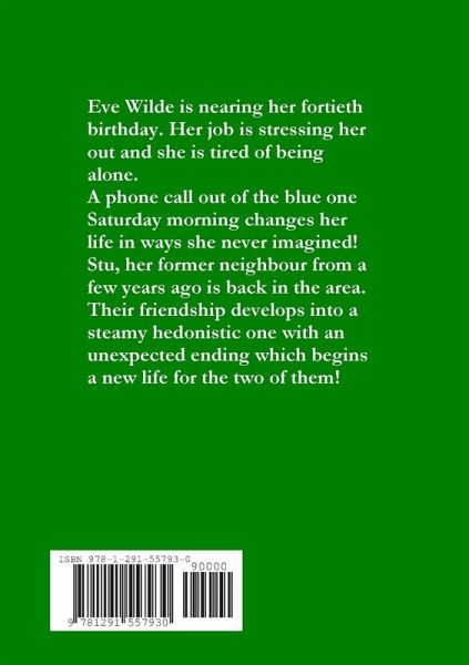 Eve Wilde is nearing her fortieth birthday. Her job is stressing her out and she is tired of being alone. A phone call out of the blue one Saturday morning changes her life in ways she never imagined! Stu, her former neighbour from a few years ago is back in the area. Their friendship develops into a steamy hedonistic one with an unexpected ending which begins a new life for the two of them!